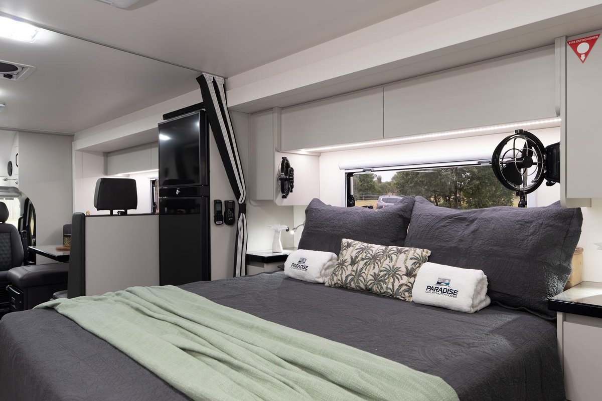 AVAIABLE STOCK TO ORDER....Paradise Independence series 28ft motor home with 2 slide-outs!!! Travel further and stay even longer with the inclusive all-electric power system! 10kw EcoFlow battery management system, 3600-watt built-in inverter, on-board 2.6kva generator, 950 watts of solar, 310L freshwater, 90L of grey water and macerator toilet with 100L black tank. Topped off with a 216l fridge, to keep your food and drinks cool on your travels. These two models will tick all the boxes when searching for your new quality RV, featuring driver/passenger overlapping slide-outs in both models making the living area, bedroom, and bathroom truly mind-boggling when both slide-outs are extended. The living space available in these two layouts, Platinum and Deluxe series, is simply decadent! The Paradise Independence series comes with the following inclusions: