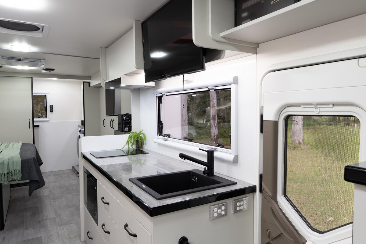 Motor home: Automatic self-levelling legs, tow bar, reverse camera, front solar screens, double glazed windows with mesh and solar screens, (x2) roof mounted air-conditioner, (x2) roof fan hatches, Induction cook top, convection oven, kitchen sink with filtered water, 216L 12v compressor fridge/freezer, satellite Tv with VAST box, Tv antenna, internal and external smart Tv’s, (x3) sirocco 12v fans, slide-out BBQ, external fold down table, electric awning, internal and external speakers, house radio, external camp lights, diesel floor heating, instant HWS, 310L fresh water and 90L grey tank, leather front seats, massive Club style leather lounge with additional seat belts and converts into a double bed, dining table, large kitchen with drawers and bench space, Island bed with bedside tables and large storage underneath, huge full-length wardrobe, pantry storage with coffee machine, loads of overhead storage and external lower storage lockers, large shower, macerator toilet with 100L black tank and vanity, external hot and cold shower, 7.5kg front loader washer/dryer in vanity, rear mounted fold up ladder, 1140watts of solar, 10kw EcoFlow battery power, EcoFlow power hub with built-in 3600 watt inverter, onboard 2.6kva generator and more......