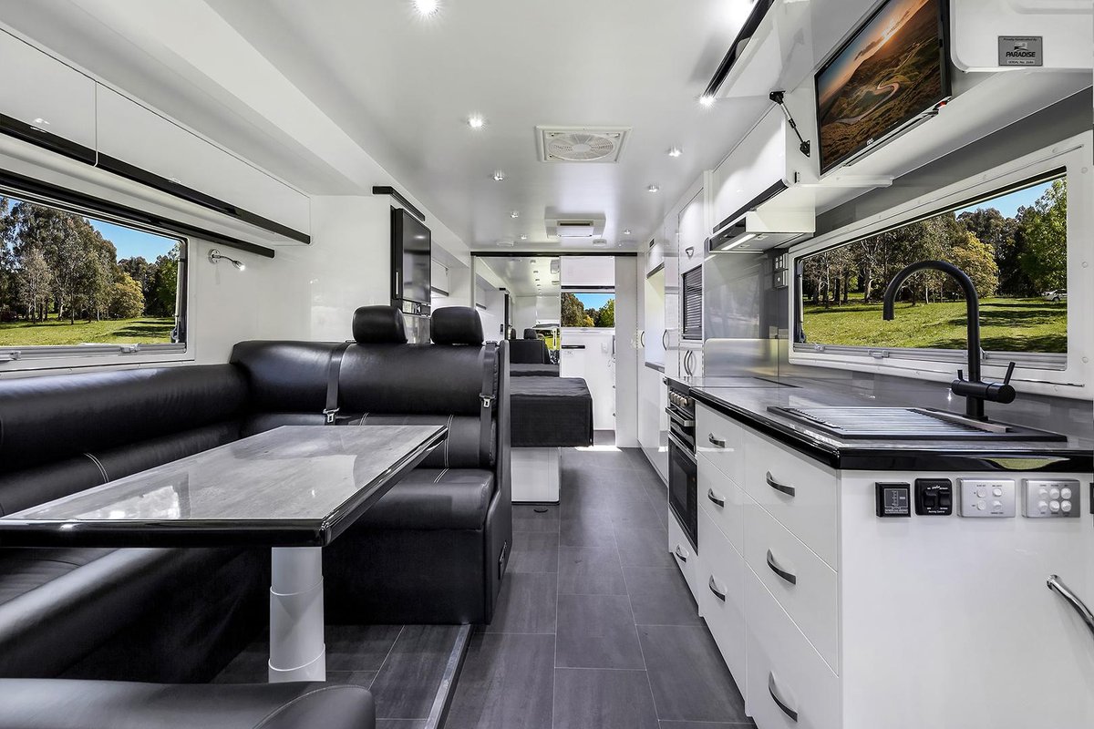 Motor home: Automatic self-levelling legs, tow bar, reverse camera, front solar screens, double glazed windows with mesh and solar screens, roof mounted air-conditioner, (x2) roof fan hatches, cook top, convection oven, kitchen sink with filtered water, 216L 12v compressor fridge/freezer, satellite Tv with VAST box, Tv antenna, internal and external smart Tv’s, (x2) sirocco 12v fans, slide-out BBQ, external fold down table, electric awning, internal and external speakers, house radio, external camp lights, diesel floor heating, instant HWS, 265L fresh water and 90L grey tank, leather front seats, massive Club style leather lounge with additional seat belts and converts into a double bed, dining table, large kitchen with drawers and bench space, Island bed with bedside tables and large storage underneath, huge full-length wardrobe, pantry storage with coffee machine, loads of overhead storage and external lower storage lockers, large shower with separate cassette toilet and vanity, external hot and cold shower, 4kg front loader washing machine, rear mounted fold up ladder, 950watts of solar, 10kw EcoFlow battery power, EcoFlow power hub with built-in 3600 watt inverter, onboard 2.6kva generator and more......